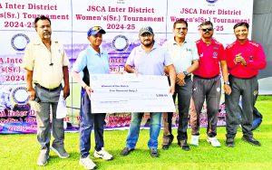 चाईबासा.झारखंड राज्य क्रिकेट संघ के तत्वावधान में पश्चिमी सिंहभूम जिला क्रिकेट संघ द्वारा आयोजित अंतर जिला सीनियर महिला क्रिकेट प्रतियोगिता के अंतर्गत शुक्रवार को खेले गए ग्रुप-बी के चौथे लीग मुकाबले में रामगढ़ ने लोहरदगा को 99 रनों से हराकर शानदार जीत दर्ज की. यह लोहरदगा की लगातार तीसरी हार रही, जिसके चलते वह प्रतियोगिता से बाहर हो गयी.मैच चाईबासा के बिरसा मुंडा क्रिकेट स्टेडियम में खेला गया. टॉस जीतकर पहले बल्लेबाजी करते हुए रामगढ़ की टीम ने निर्धारित 50 ओवरों में 4 विकेट खोकर 227 रन बनाए. कप्तान प्रतीक्षा दूबे ने 4 चौकों और 1 छक्के की मदद से 49 रनों की शानदार पारी खेली. अन्य प्रमुख योगदानकर्ताओं में श्रेया प्रिया ने 40, प्रिया पटेल ने नाबाद 32, प्रगति कुमारी ने 31, सुधा कुजूर ने नाबाद 30 और सुलेखा कुमारी ने 26 रन बनाए. लोहरदगा की ओर से हंसिका कुमारी ने शानदार गेंदबाज़ी करते हुए 42 रन देकर 3 विकेट झटके.जवाब में लक्ष्य का पीछा करने उतरी लोहरदगा की पूरी टीम 34.2 ओवर में 128 रनों पर ऑल आउट हो गई. लोहरदगा की ओर से कप्तान इशिका भगत ने 34 और आफरीन खान ने 30 रन बनाए. रामगढ़ की ओर से गेंदबाजी में भी कप्तान प्रतीक्षा दूबे ने शानदार प्रदर्शन करते हुए 9 रन देकर 2 विकेट लिए. अमिषा परमार ने 10 रन देकर 2 विकेट, जबकि प्रगति कुमारी, खुशी राठौड़ और अंजलि यादव ने एक-एक विकेट लिया. मैच समाप्ति के बाद आयोजित पुरस्कार वितरण समारोह में प्रतीक्षा दूबे को उनके हरफनमौला प्रदर्शन के लिए “प्लेयर ऑफ द मैच ” घोषित किया गया. उन्हें पुरस्कार स्वरूप ₹5,000 नकद राशि प्रदान की गई, जो पश्चिमी सिंहभूम महिला क्रिकेट चयन समिति के सदस्य गुरमीत सिंह द्वारा सौंपा गया.