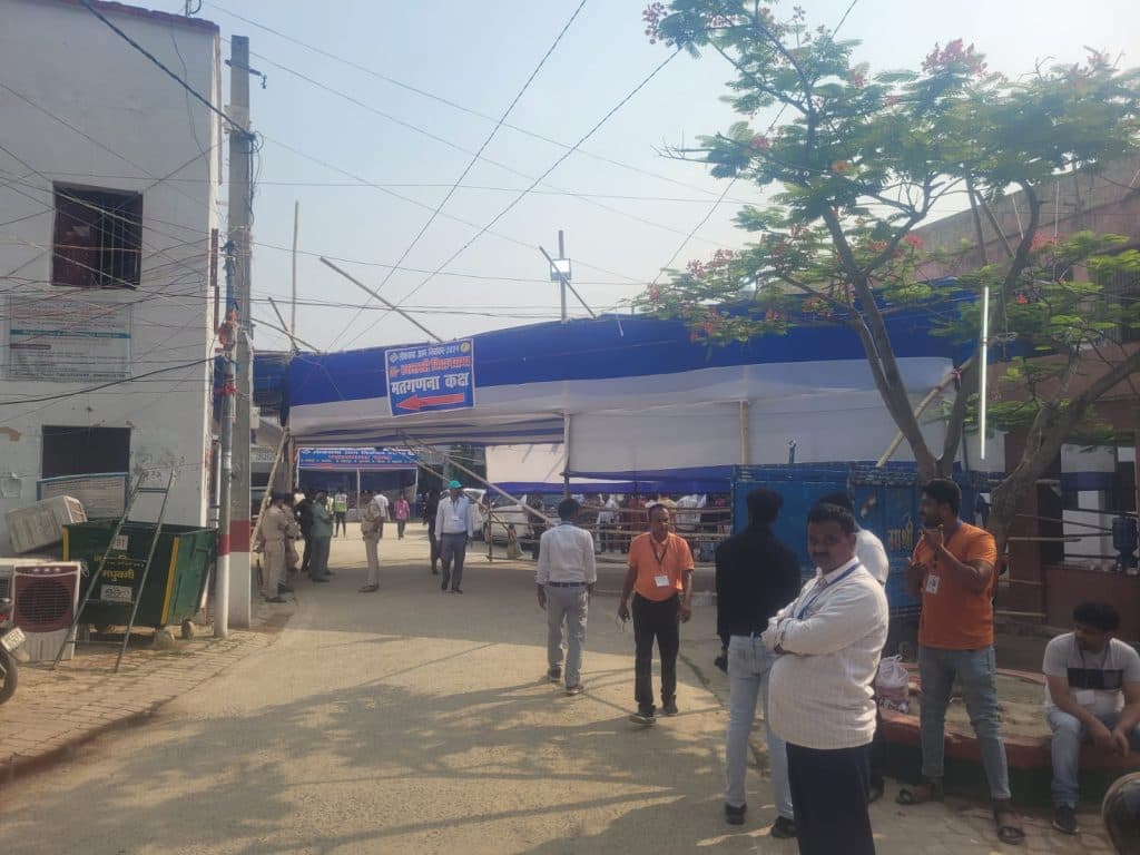 सिवान लोकसभा सीट के लिए डीएवी कॉलेज में चल रही मतगणना मतगणना स्थल के बाहर की तस्वीर