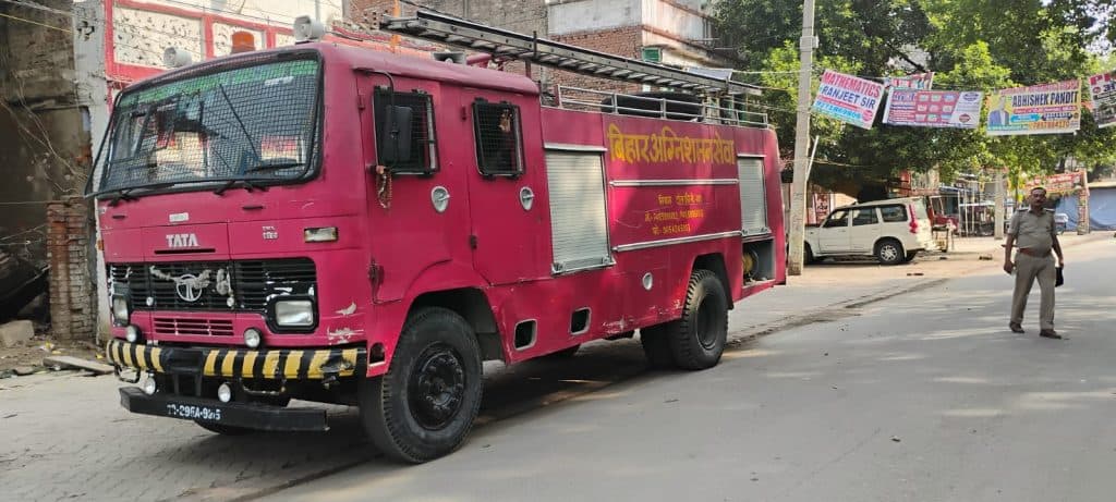 सिवान लोकसभा सीट के लिए डीएवी कॉलेज में चल रही मतगणना मतगणना स्थल के बाहर तैनात दमकल की गाड़ी