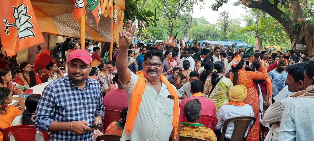 Lok sabha election Result Jamshedpur जमशेदपुर लोकसभा (Lok sabha)सीट के लिए मंगलवार की सुबह से ही मतगणना स्थल को- ऑपरेटिव कॉलेज के पास राजनितिक पार्टी (political party)के लोगों का आना जाना शुरू हो गया. जिला प्रशासन के अधिकारी भी सुबह करीब पांच बजे से आना शुरू कर दिये थे. सभी मतगणनाकर्मी भी समय से काफी पहले पहुंच कर अपने ड्यूटी में लग गये थे. वहीं गेट नंबर एक के सामने भारतीय जनता पार्टी (BJP) का टेंट लगाया गया था. जिसमें सुबह से ही भाजपा के कार्यकर्ता बैठ कर भारत माता की जय का नारा लगा रहे थे. पार्टी के नेता और कार्यकर्ता लगातार अपने टेंट की ओर आ रहे थे. सुबह 10 बजे तक पूरा टेंट BJP पार्टी के नेता और कार्यकर्ताओं से भर गया. अब लोग भाजपा के झंडा लेकर भाजपा के टेंट के बाहर खुद ही नाच गाना करते रहे. प्रधानमंत्री नरेंद्र मोदी का कटआउट वाली तस्वीर लेकर लोग झूमते दिखे. भाजपा महिला मोर्चा की कार्यकर्ता भी जोश और उमंग के साथ पार्टी के टेंट में पहुंचे. भाजपा महानगर अध्यक्ष सुधांशु ओझा सुबह सात बजे ही कैंप में पहुंचे. जहां उन्होंने मतगणना केंद्र में जाने वाले कार्यकर्ताओं को प्रवेश के लिए पास दिये. भाजपा के पूर्व जिला अध्यक्ष देवेंद्र सिंह, गुंजन यादव समेत कई नेता सुबह से ही कैंप में पहुंचे. मतगणना के बाद प्रत्येक राउंड का रिजल्ट जारी होने के साथ भाजपा के कार्यकर्ता ढ़ाेल-नगाड़ा पर डांस शुरू कर दिये. इस दौरान कार्यकर्ताओं में काफी उल्लास देखा गया. लोग भाजपा के झंडा लेकर नाचते और झूमते हुए नजर आये. वही लगातार बढ़त की घोषणा होने के बाद पार्टी के कार्यकर्ता एक दूसरे को बधाई देते हुए नजर आये. प्रधानमंत्री नरेंद्र मोदी की तस्वीर लेकर लोग झूमते हुए दिखे.