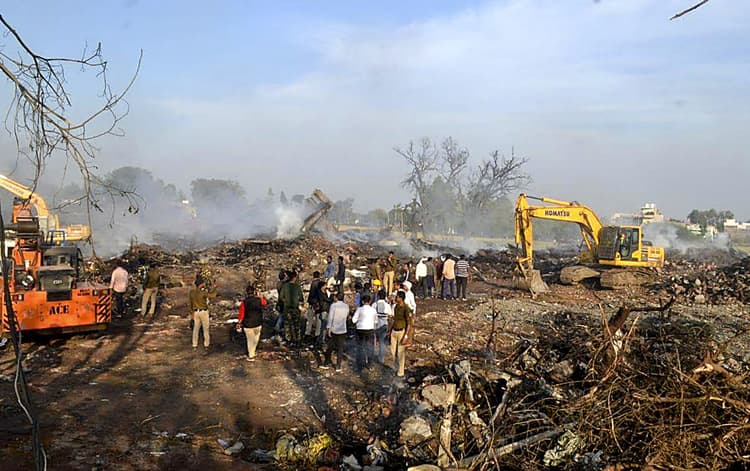 ‘बिखरे शव, टूटे-फूटे घर और चारों तरफ मलबा के बीच बदहवास भागते लोग… मध्यप्रदेश के हरदा में मंगलवार को कुछ ऐसा ही मंजर नजर आया . हरदा की एक पटाखा फैक्ट्री में विस्फोट और भयानक आग लगने की घटना में 11 लोगों की मौत हो गयी और 174 अन्य लोग घायल हो गये. हरदा की पटाखा फैक्ट्री में आग कैसे लगी इसका अभी तक खुलासा नहीं हो सका है. धमाके के कारणों का पुलिस पता लगाने की कोशिश में जुटी है. प्रदेश सरकार के मंत्री राव उदय प्रताप सिंह को हरदा ले जा रहे हेलीकॉप्टर से शूट किए गए वीडियो में दिखाया गया कि कारखाना मलबे में तब्दील हो गया है. प्रत्यक्षदर्शियों ने बताया कि कारखाने में विस्फोट के बाद मौके पर कई शव पड़े हुए हैं, जबकि कई लोग लापता बताए जा रहे हैं.