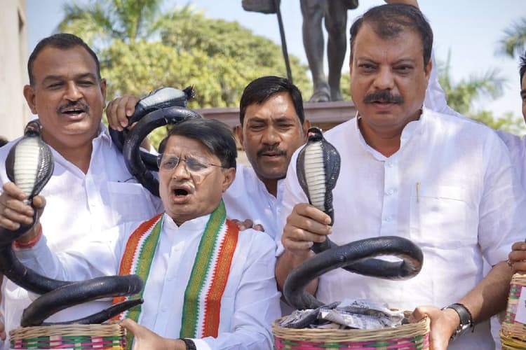 Watch Video : मध्य प्रदेश के नेता प्रतिपक्ष और कांग्रेस विधायक उमंग सिंघार और पार्टी कार्यकर्ताओं ने राज्य सरकार के खिलाफ विरोध प्रदर्शन किया. सिंघार ने कहा, “बीजेपी युवाओं को बेरोजगार बना रही है, विभिन्न सरकारी विभागों में हजारों पद खाली हैं. पुलिस विभाग और अन्य विभागों में करीब 70,000-80,000 पद खाली हैं, लेकिन बीजेपी भर्ती करने को तैयार नहीं है, क्यों? बीजेपी मध्य प्रदेश की जनता को काट रही है.” विधानसभा सत्र के दूसरे दिन सरकार द्वारा युवाओं को रोजगार न दिए जाने के विरोध में कांग्रेस विधायक सांप के साथ विरोध प्रदर्शन करने पहुंचे. देखें वीडियो