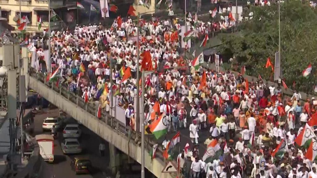 महा विकास अघाड़ी के शिवसेना (उद्धव बालासाहेब ठाकरे), एनसीपी और कांग्रेस के नेताओं ने कहा कि शिवाजी महाराज और महात्मा ज्योतिबा फुले जैसी शख्सियतों के अपमान, कर्नाटक के सीमाई क्षेत्रों में मराठी भाषियों के साथ अत्याचार और औद्योगिक परियोजनाओं के बाहर होने के खिलाफ मुंबई में प्रदर्शन किया जा रहा है.
