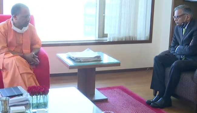 महाराष्ट्र : उत्तर प्रदेश के नोएडा में फिल्म सिटी निर्माण को लेकर रूपरेखा तैयार करने के लिए दो दिवसीय दौरे पर मुंबई पहुंचे सूबे के मुख्यमंत्री योगी आदित्यनाथ ने बुधवार को टाटा समूह के अध्यक्ष नटराजन चंद्रशेखरन से मुलाकात कर कई मुद्दों पर चर्चा की. इस दौरान उत्तर प्रदेश के कैबिनेट मंत्री सिद्धार्थ नाथ सिंह और आशुतोष टंडन भी मौजूद थे.