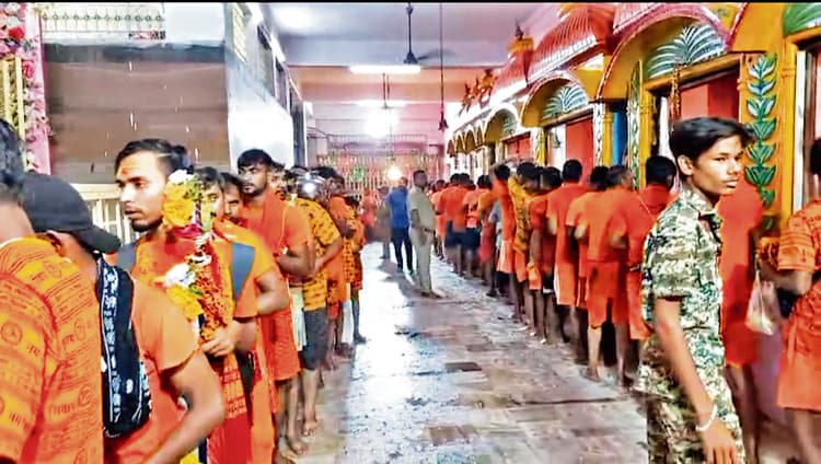 तरकेरा शिव मंदिर में जलाभिषेक के लिए भक्तों की लगी कतार