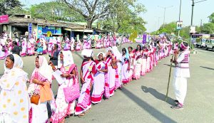 पारंपरिक वेशभूषा में शामिल हुए महिला व पुरुष