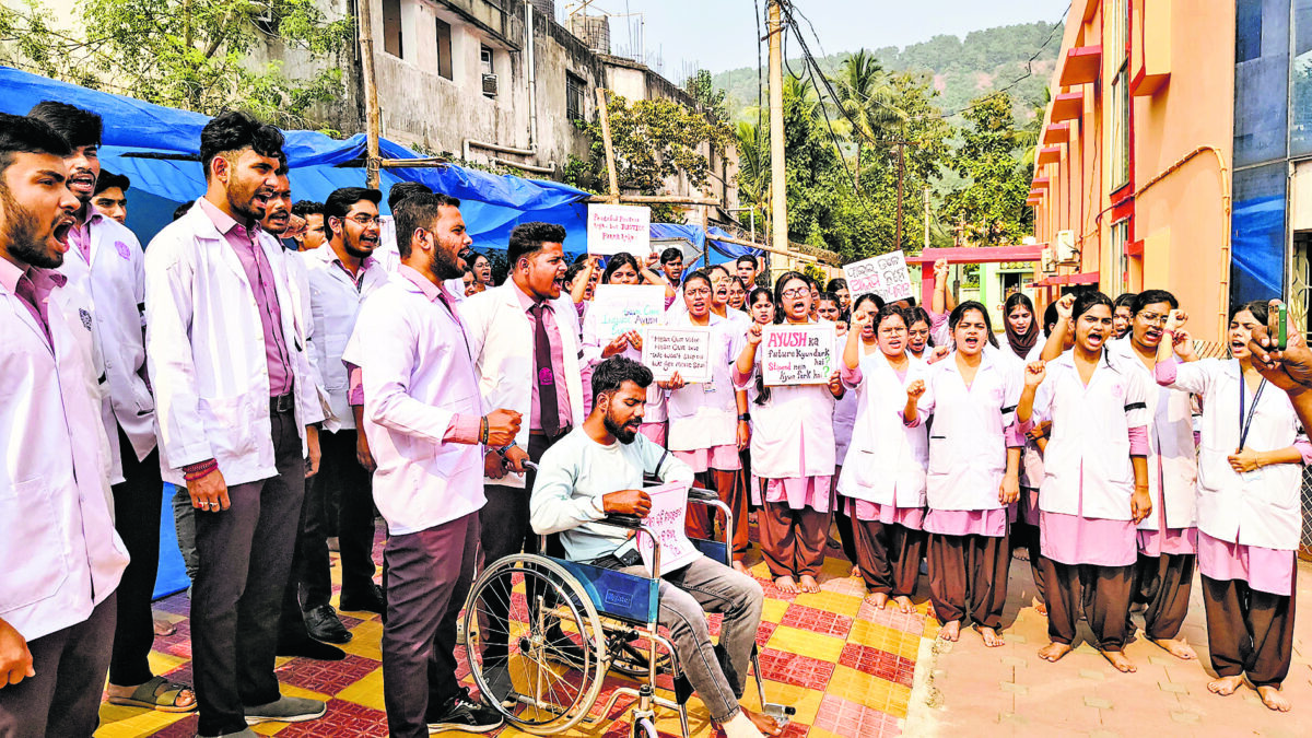Rourkela News: ऑल ओडिशा आयुष स्टूडेंट्स यूनियन ने अपने आठ मांगों के समर्थन में सोमवार से ‘तालाबंदी’ आंदोलन शुरू कर दिया. सेक्टर 21 नयाबाजार में गवर्नमेंट होम्योपैथी कॉलेज के स्टूडेंट्स ने ऑफिस और गेट पर ताला लगा दिया और धरने पर बैठ गये. साथ ही चेतावनी दी कि जब तक उनकी मांगें पूरी नहीं होतीं, वे नहीं हटेंगे. उनकी मांगों में आयुष डॉक्टरों की नियुक्ति, पीजी और पीएचडी सीटें बढ़ाना, स्टाइपेंड बढ़ाना आदि शामिल हैं.