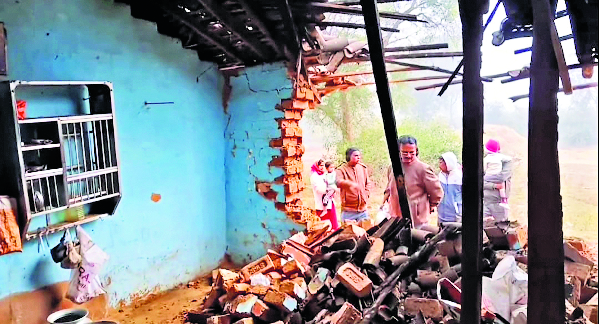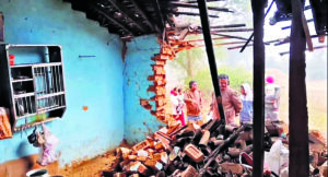 लाठीकटा : दंतैल हाथी ने दो ग्रामीणाें का मकान तोड़ा