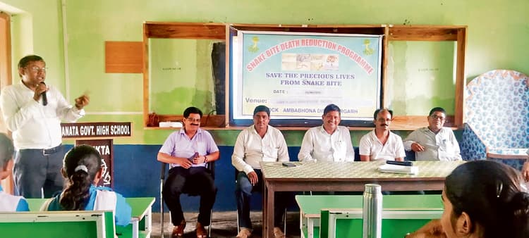Sambalpur News: बरगढ़ जिले के अंबाभोना ब्लॉक स्थित जनता सरकारी हाइस्कूल, भुक्ता में साप के काटने से मौत के मामले में कमी कैसे की जा सकती है, इस पर एक जागरुकता कार्यक्रम गुरुवार को आयोजित हुआ. इसमें सर्पदंश से संबंधित मौतों को रोकने में जागरुकता और समय पर चिकित्सा के महत्व पर प्रकाश डाला गया. इस कार्यक्रम का उद्देश्य छात्रों, शिक्षकों और स्थानीय समुदाय को सर्पदंश की रोकथाम, प्राथमिक चिकित्सा और सर्पदंश के मामले में तत्काल चिकित्सा सहायता लेने के महत्व के बारे में शिक्षित करना था.