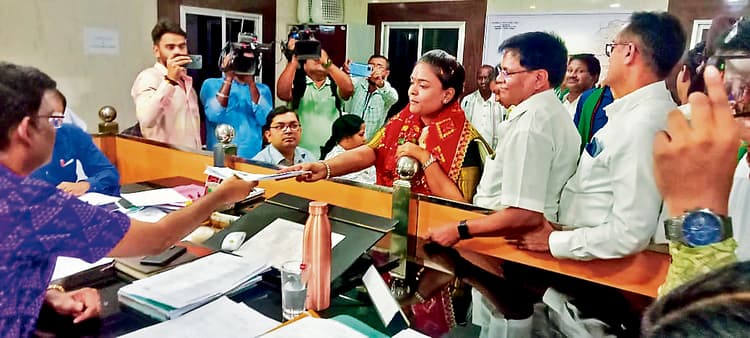 झारसुगुड़ा. झारसुगुड़ा विधानसभा सीट के लिए बीजद उम्मीदवार दीपाली दास ने शुक्रवार को अपना नामांकन पत्र झारसुगुड़ा उपजिलाधीश कार्यालय में दाखिल किया. इससे पूर्व दीपाली दास ने सुबह नौ बजे सुनारी मुंडा स्थित मां पाटनेश्वरी व झारसुगुड़ा के आराध्य देवता जागेश्वर बाबा की पूजा-अर्चना की. इस अवसर पर उनके भाई व युवा नेता विशाल दास व परिवार के अन्य सदस्य समेत बीजद नेता संदीप अवस्थी, तापश राय चौधरी, गोविंद सिंघानिया, पप्पू शर्मा, शाहिद बेग, पिंटू पाढ़ी, प्रताप नंद, जाहिद कुरैशी, सरिता अग्रवाल, बी नागेश्वरी सहित झारसुगुड़ा जिला के सभी वरिष्ठ बीजद नेता तथा झारसुगुड़ा जिला बीजद के संयोजक विष्णु केडिया उपस्थित थे.