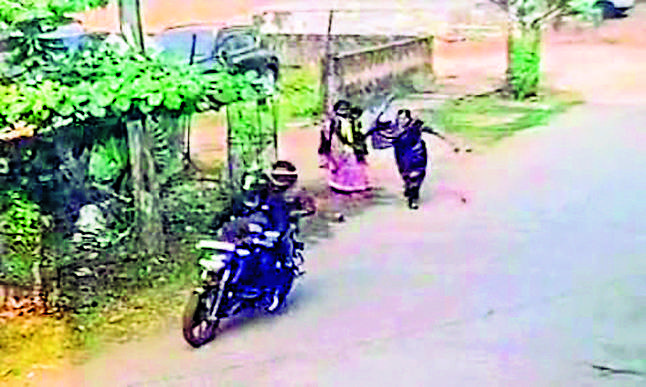 शनिवार सुबह साढ़े नौ बजे तारिणी मंदिर के सामने रोड में भास्कर चौक पर एक महिला घर से निकलकर पीपल पेड़ में जल चढ़ाने जा रही थी. उसी समय एक काले रंग की बाइक पर सवार दो उचक्के पहुंचे. उन्होंने महिला पर हमला कर गले से सोने की चेन झपट ली और भाग खड़े हुए. महिला ने शोर भी मचाया, लेकिन तब तक दोनों फरार हो चुके थे. पुलिस ने सीसीटीवी फुटेज के आधार पर लुटेरों की पहचान करने की कोशिश जारी रखी है. पुलिस का कहना है कि वे जल्द ही लुटेरों को पकड़ लेंगे. लोगों का कहना है कि शहर में अपराध बढ़ रहा है. अपराध को रोकने के लिए पुलिस को कड़े कदम उठाने चाहिए.