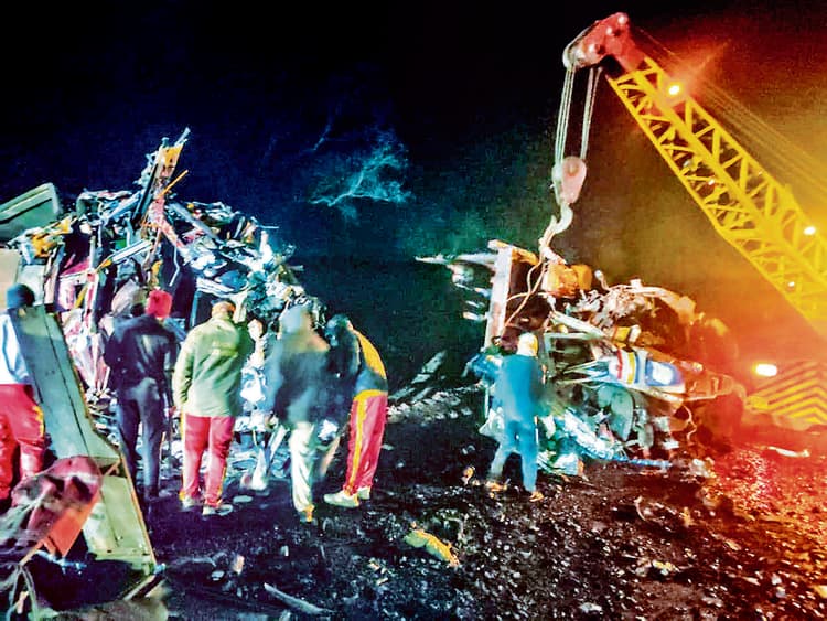 Rourkela News : राष्ट्रीय राजमार्ग नंबर-520 पर डेथ जोन के रूप में परिणत हो चुका केबलांग थाना अंतर्गत चूनाघाटी में हुई दुर्घटना में दो लोगों की जान चली गयी. शुक्रवार की देर रात ट्रक व हाइवा के बीच जोरदार टक्कर के बाद दोनों वाहनों में आग लग गयी. इस हादसे में दोनों वाहनों के चालकों की मौत हो गयी. घटना रात करीब 1.30 बजे घटी. बताया जाता है कि कोइड़ा माइनिंग सेक्टर से एक हाइवा चूनाघाटी डाउन पर जा रहा था. तभी इसका ब्रेक फेल हो गया और यह तेज गति से डिवाइडर पारकर कुंदुरुपानी चाैक के पास झारसुगुड़ा के ब्रजराजनगर से कोयला लोड कर आ रहे ट्रक से टकरा गया. टक्कर इतनी जोरदार थी कि दोनों वाहनों में आग लग गयी. इसका पता चलने पर केबलांग पुलिस की टीम पहुंची तथा अग्निशमन विभाग को सूचित किया. आग बुझाने के बाद दोनों गाड़ी के चालकों को कटर की मदद से काटकर निकाला गया. घटना के बाद वहां वाहनों की लंबी कतार लग गयी. इस दुर्घटना में हाइवा के चालक मानस लोहार (26) व ट्रक चालक सतवंत कुमार गौतम (38) की मौत हो गयी. पुलिस ने दोनों का शव पोस्टमार्टम के लिये भेजने के बाद परिवार के लोगों काे सूचित किया. परिवार के आने के बाद दोनों शवों को पोस्टमार्टम के बाद शनिवार को परिजनों को साैंप दिया गया.