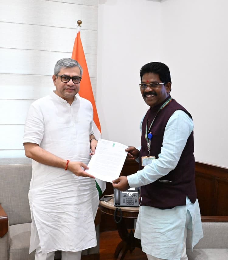 नयी दिल्ली/भुवनेश्वर. लोकसभा में भाजपा के सचेतक और क्योंझर सांसद अनंत नायक ने बुधवार को केंद्रीय रेल मंत्री अश्विनी वैष्णव से मुलाकात की. इस दौरान उन्होंने रेलवे से संबंधित क्योंझर की विभिन्न मांगें रखीं. बैठक के दौरान, उन्होंने अपनी मांगों को लेकर एक ज्ञापन भी सौंपा. इसमें विभिन्न रेलवे परियोजनाओं को शीघ्र पूरा करने, रेलवे के बुनियादी ढांचे में सुधार और क्योंझर से अधिक संख्या में ट्रेनें चलाने का अनुरोध किया गया है. केंद्रीय रेल मंत्री अश्विनी वैष्णव ने श्री नायक को आश्वासन दिया है कि वह उनके अनुरोध पर सहानुभूतिपूर्वक विचार करेंगे.
