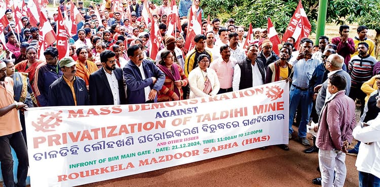 Rourkela News: सेल राउरकेला स्टील प्लांट द्वारा संचालित बरसुआं व तालडीही लौह अयस्क खदान के सामने टेनसा ग्राम पंचायत की सरपंच अनिता पूर्ति और राउरकेला मजदूर सभा की अगुवाई में प्रदर्शन किया गया. प्रदर्शनकारियों ने काेइड़ा माइनिंग सेक्टर अंतर्गत टेनसा ग्राम पंचायत अंचल की खदानों में स्थानीय युवाओं को रोजगार नहीं देने का आरोप लगाया. इस आंदोलन में राउरकेला मजदूर सभा के अध्यक्ष शशधर नायक, कार्यकारी अध्यक्ष असित कुमार दास, खगेंद्र बेहेरा, प्रमोद कुमार दास, दिलीप जेना, सत्यानंद बेहेरा, सचिव अक्षय कुमार नायक, राजेश बेहेरा, शेख सिराजुद्दीन, नरेश नायक, समिति सदस्य ग्लोरिया तिर्की, सभी वार्ड मेंबर व समाजसेवी पप्पू मोहंती समेत बड़ी संख्या में टेनसा अंचल की जनता शामिल रही.