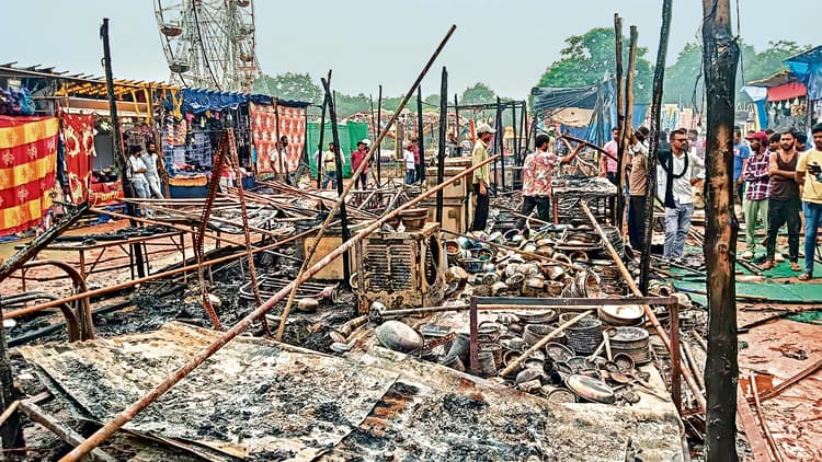 Rourkela News: राउरकेला पुलिस जिला के झीरपानी थाना अंतर्गत झीरपानी फुटबॉल मैदान में लगे मीना बाजार (मेला) में सोमवार तड़के आग लग गयी. इसमें लगभग 20 दुकानें जलकर राख हो गयी हैं. दुकानों के सभी सामान पूरी तरह से नष्ट हो गये हैं.