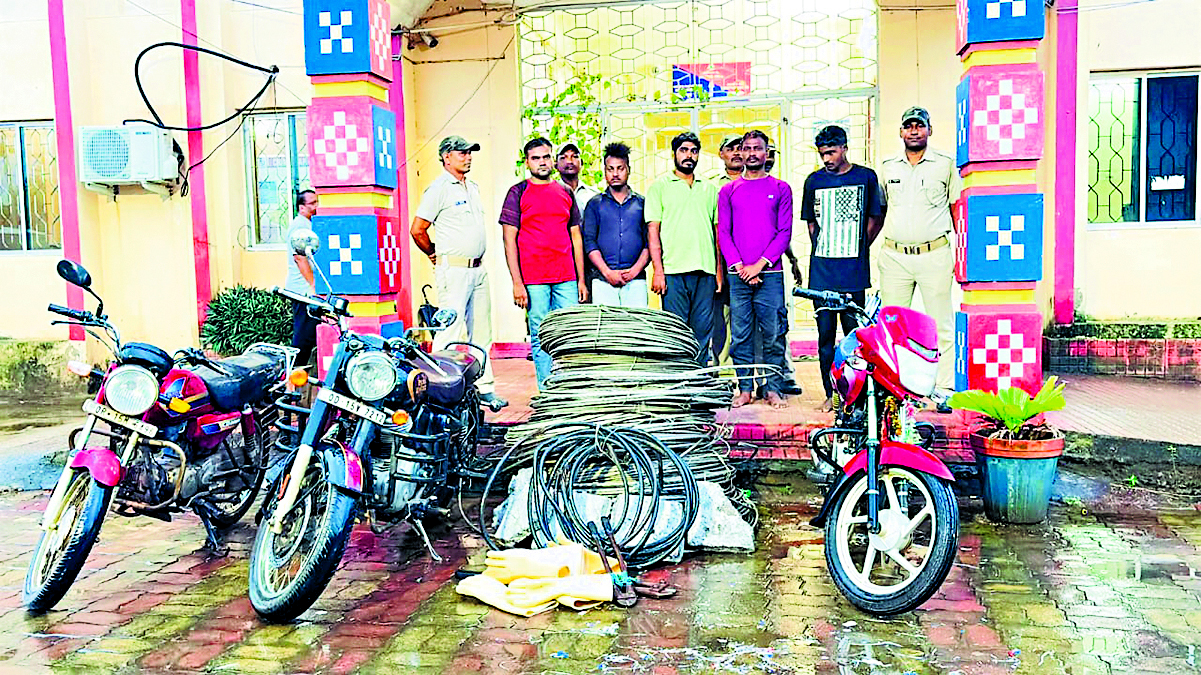 गिरफ्तार आरोपियों में उत्तर प्रदेश के मूल निवासी और कुचिंडा के रामजी पाड़ा में रहने वाले एक गुपचुप विक्रेता सुशील कुमार पांडे, सुंदरगढ़ जिला सदर थाना टांगरमुंडा गांव के मिनकेतन ओराम (24), जमनकिरा थाना बड़खलिया गांव के त्रिनाथ खिचड़ी (30), लक्ष्मी छेड़िया (27) और कुचिंडा थाना लिपिइकानी के हरेश किसान (25) को गिरफ्तार किया. पुलिस ने इनके पास से 10 क्विंटल बिजली के एल्युमीनियम तार, तीन किलो तांबा तार, तीन बाइक, तीन पाइप कटर, हैंड ग्लोब और अन्य सामान जब्त किया है. कुचिंडा एसडीपीओ प्रदीप कुमार दास ने शनिवार देर शाम प्रेस कॉन्फ्रेंस में यह जानकारी साझा की.