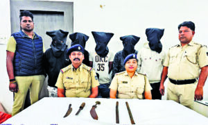जानकारी के अनुसार, प्लांट साइट थाना के एसआइ एस प्रधान गुरुवार तड़के अपनी टीम के साथ थाना अंचल में गश्त पर निकले थे. इस दौरान उन्हें सूचना मिली कि राउरकेला रेलवे कॉलोनी के फिल्टर हाउस के पास मकान, दुकान व पेट्रोल पंप पर डकैती डालने या फिर राहगीरों को लूटने की योजना कुछ असामाजिक तत्व बना रहे हैं. पुलिस की टीम ने तुरंत वहां पर दबिश दी. पुलिस ने मौके से प्लांट साइट थाना अंतर्गत गोपबंधुपाली पुलिस बीट हाउस के पीछे रहनेवाले सचिन प्रसाद (22), जतिन राय (19), देव मोहंती (19), श्याम दास (29) व इंदिरानगर जीआरपी बैरक के पीछे रहनेवाले शंकर अमांत (25) को गिरफ्तार किया. उनके पास से भुजाली (काती), चाकू, लोहे की छड़ जैसे घातक हथियार जब्त किये गये. इन सभी आरोपियों में देव मोहंती को छोड़कर अन्य सभी आरोपियों के खिलाफ टिकायतपाली, प्लांट साइट व सेक्टर-19 थाना में पहले से कई मामले दर्ज हैं. पुलिस की तत्काल कार्रवाई से एक जघन्य अपराध को रोका जा सका और इन दुर्दांत अपराधियों को पकड़कर अदालत में पेश किया गया.