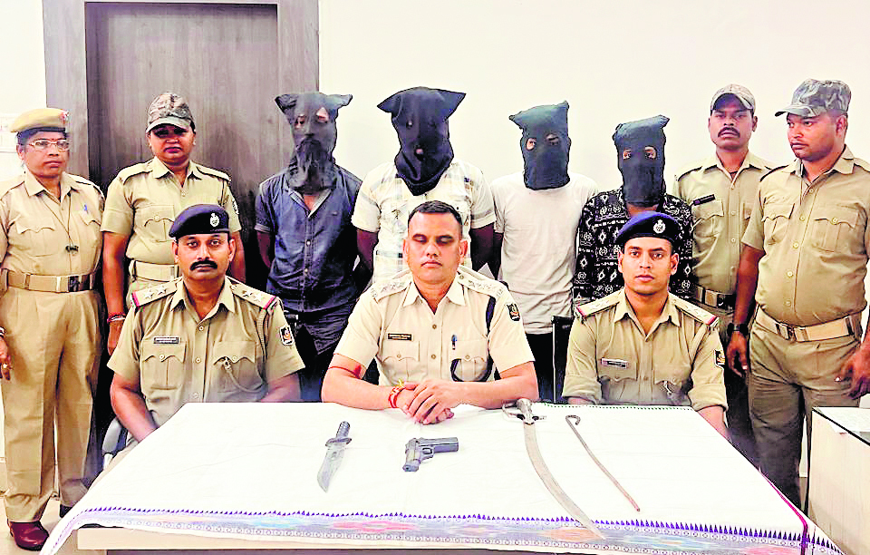 Rourkela News : प्लांट साइट पुलिस ने टिंबर कॉलोनी में छापेमारी कर डकैती की योजना बना रहे चार आरोपियों को गिरफ्तार किया है. उनके पास से पिस्तौल, तलवार और चाकू समेत अन्य सामान बरामद किया गया है. आरोपियों की पहचान विकास डुंगरी, शंकर गिलुआ, जतीन राय और प्रिंस राव के रूप में हुई है. पुलिस के अनुसार, चारों इलाके में पेट्रोल पंप, घरों तथा दुकानों में डकैती की योजना बनाने के लिए टिंबर कॉलोनी के पास दीप्ति होटल के पीछे वाले हिस्से में एकत्रित हुए थे. बदमाशों के पास पिस्तौल, तलवार, भुजाली, लोहे का सरिया जैसे घातक हथियार थे.