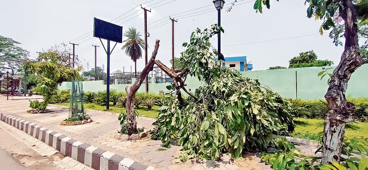 Rourkela News : राउरकेला स्टील सिटी से लेकर स्मार्ट सिटी के अलग-अलग स्थानों पर सोमवार की शाम काल बैसाखी के प्रभाव की वजह से शहर का जन-जीवन अस्त-व्यस्त रहा. बारिश व आंधी के कारण कई स्थानों पर पेड़ गिरने से लेकर बिजली के खंभे क्षतिग्रस्त होने से घंटों तक बिजली गुल रही. जिससे लोगों को परेशानी हुई. खासकर रिंगरोड से लेकर अलग-अलग सेक्टरों में भी पेड़ गिरने के साथ-साथ घरों में पानी घुसने से भी लोग परेशान रहे. वहीं देर शाम तक काल बैसाखी का तांडव थमने के बाद आरएसपी के शहर सेवा विभाग, अग्निशमन विभाग समेत राज्य अग्निशमन विभाग की टीम की ओर से पेड़ों को काटने के साथ बिजली आपूर्ति को दुरुस्त किया गया. लेकिन, सेक्टर-2 स्थित इस्पातांचल के कई सेक्टरों में मंगलवार की सुबह तक बिजली गुल रही. मंगलवार को दोपहर तक बिजली आपूर्ति स्वाभाविक हो पायी. काल बैसाखी के प्रभाव से सेक्टर-16 डी ब्लाॅक के पास बिजली तार पर एक बड़ा पेड़ गिर पड़ा था. लेकिन इससे बिजली के तार तो नहीं टूटे, जबकि बिजली का खंभा टेढ़ा हो गया है. मंगलवार की दोपहर यहां पर पेड़ की कटाई कर इसे दुरुस्त करने का काम किया गया. वहीं सात-17 चौक से सेक्टर-7 तक जानेवाली सड़क पर पेड़ गिरने से मंगलवार की सुबह तक वहां रास्ता जाम रहा. इसके अलावा रिंगरोड से लेकर शहर के अलग-अलग सेक्टरों के अलावा एयरपोर्ट मार्ग से लेकर राउरकेला महानगर निगम अंचल के अलग-अलग स्थानों पर पेड़ गिरने की जानकारी मिली है.