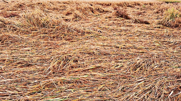 धान की फसल खेत में गिरी, सब्जियां पड़ रहीं काली