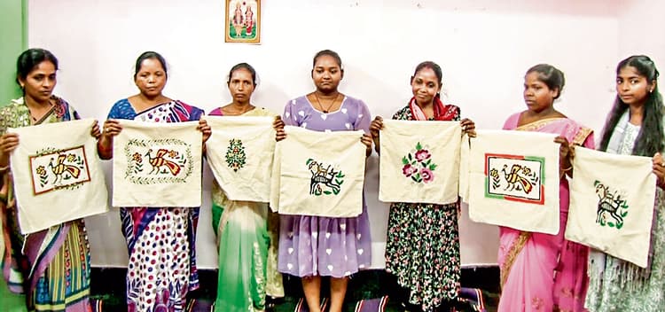 रूमाल, कुशन कवर, बेडस्प्रेड व वाल हैंगिंग बनाना सीख रहीं