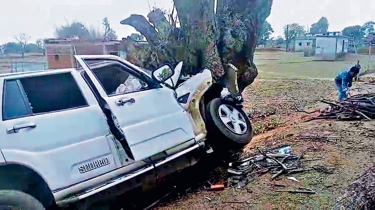 जानकारी के अनुसार, रायबोगा निवासी रश्मिकांत साहू की शादी झारखंड के चतरा जिले के लावालौंग थाना क्षेत्र के लमटा गांव के अमरदीप प्रसाद की बेटी प्रीति कुमारी के साथ 20 अप्रैल को हुई थी. शादी के बाद बहरोता में वे अपनी ससुराल गये थे. गांव में अन्य रस्में पूरी होने के बाद पूजा-अर्चना करने के लिए इटखोरी में मां भद्रकाली मंदिर आये थे. शनिवार को पूजा कर वापस लौट रहे थे. इसी दौरान झारखंड के इटखोरी-चतरा मुख्य मार्ग पर राजपुर थाना अंतर्गत गंधरिया गांव के पास उनकी स्कॉर्पियो पेड़ से टकराकर दुर्घटनाग्रस्त हो गयी.