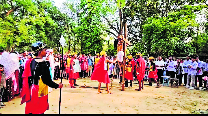 बंडामुंडा में ईसाई धर्मावलंबियों ने शुक्रवार को गुड फ्राइडे मनाया. इस अवसर पर प्रभु यीशु के बलिदान को याद किया गया और अपने पापों के प्रायश्चित के लिए प्रार्थना की गयी. बंडामुंडा रोमन कैथोलिक चर्च में विशेष प्रार्थना में बड़ी संख्या में मसीही समाज के लोग शामिल हुए. फादर जोसेफ पाइस ने कहा कि ईसाई समाज में गुड फ्राइडे का एक अलग और खास महत्व है. जब प्रभु यीशु को सूली पर लटकाया गया, तो उन्होंने सजा देने वालों को कुछ नहीं कहा. सिर्फ प्रार्थना करते हुए उन्होंने इतना ही कहा कि हे प्रभु इन्हें क्षमा कर देना, क्योंकि यह नहीं जानते कि यह क्या कर रहे हैं. उन्हें कई तरह की यातनाएं दी गयीं. सिर पर कांटों का ताज पहनाया गया. हथेलियों और पंजों में कीलें ठोंकी गयीं और फिर सूली पर चढ़ा दिया गया. लगभग तीन घंटे बाद उन्होंने कहा कि हे परमेश्वर पिता मैं अपनी आत्मा को तुझे सौंपता हूं. इतना कहकर उन्होंने अपने प्राण त्याग दिये. उन्होंने कहा कि ईसा मसीह ने मानव कल्याण के लिए दया, क्षमा और समर्पण का संदेश दिया. बंडामुंडा रोमन कैथोलिक चर्च के फादर जोसेफ पाइस वा विश्वासियों ने शाम 3:00 बजे चर्च के मैदान में क्रूस रास्ता झलक का आयोजन किया. प्रभु यीशु को सूली पर चढ़ाने के पूर्व के घटनाक्रम की झांकी दिखायी गयी.लाठीकटा : प्रभु यीशु को सूली पर चढ़ाने की निकली झांकी