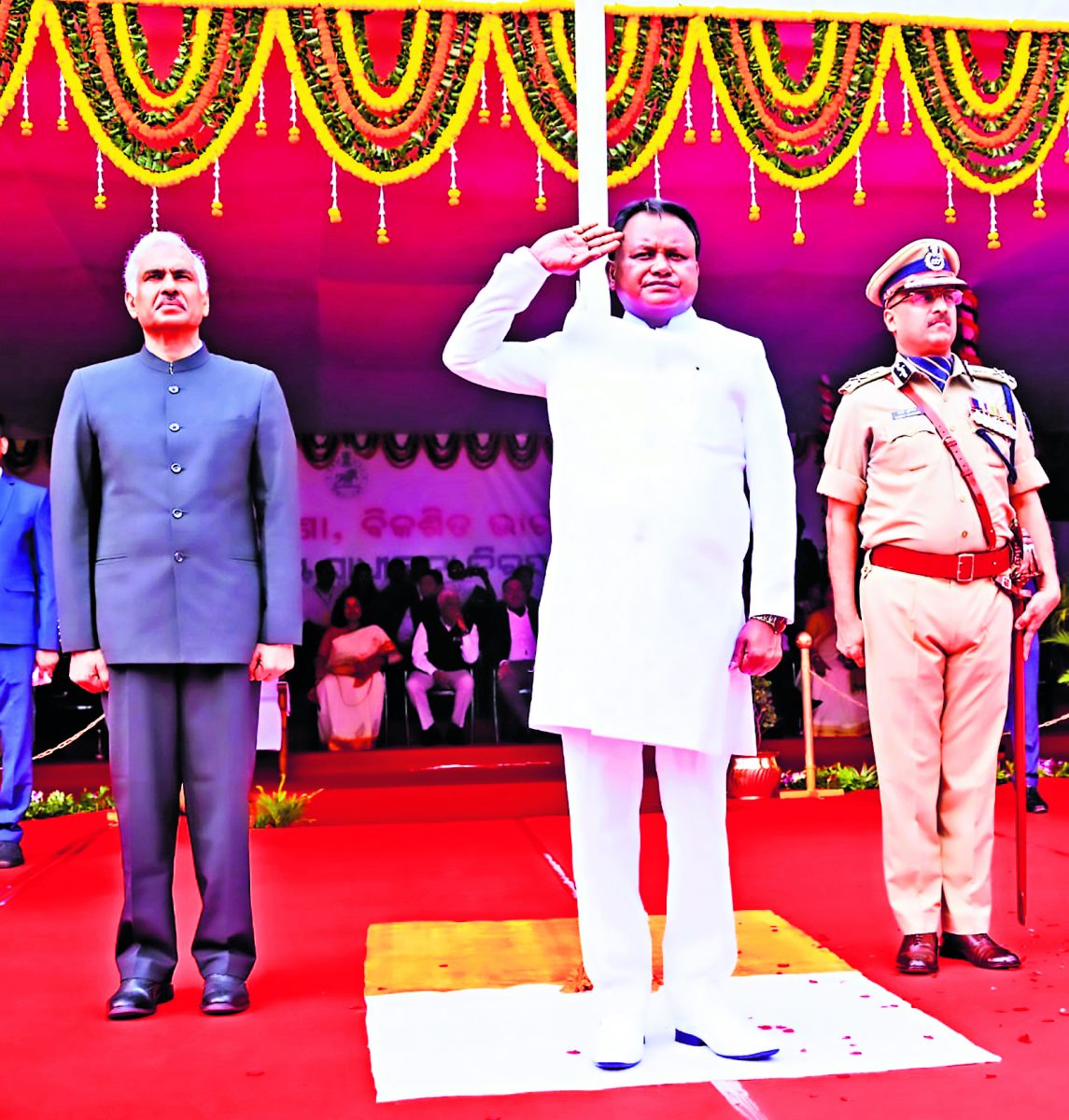 मुख्यमंत्री माझी ने वोकल फॉर लोकल को समर्थन देने के उद्देश्य से ओडिशावासियों से सप्ताह में कम से कम एक दिन हस्तनिर्मित वस्त्र पहनने का आग्रह किया. उन्होंने यह भी उल्लेख किया कि सरकार भगवान जगन्नाथ की धरती को एक विश्वस्तरीय धार्मिक और सांस्कृतिक पर्यटन स्थल में बदलने तथा पुरी को एक महानगर निगम में परिवर्तित करने के लिए प्रतिबद्ध है. कर्तव्य पालन के दौरान प्राणों की आहुति देने वाले सुरक्षाकर्मियों को सम्मानित करने के उद्देश्य से एक पुलिस स्मारक की घोषणा की गयी है, जो उनके बलिदान और त्याग का एक उत्कृष्ट प्रतीक होगा. मुख्यमंत्री ने बताया कि कृषि, शिक्षा, स्वास्थ्य, परिवहन, आधारभूत संरचना, पर्यावरण, विरासत और संस्कृति जैसे सभी क्षेत्रों पर ध्यान देते हुए ओडिशा राज्य के गठन की शताब्दी वर्ष 2036 को लक्ष्य में रखकर विकास के लिए सरकार ने 36 अलग-अलग विशेष कार्यक्रम तैयार किये हैं. पर्यावरण संरक्षण को ध्यान में रखते हुए मुख्यमंत्री ने घोषणा की कि प्रधानमंत्री नरेंद्र मोदी के 75वें जन्मदिन के अवसर पर राज्यभर में ‘एक पेड़ मां के नाम’ कार्यक्रम के तहत 75 लाख पेड़ लगाये जायेंगे.परेड में 50 प्लाटूनों ने लिया हिस्सा