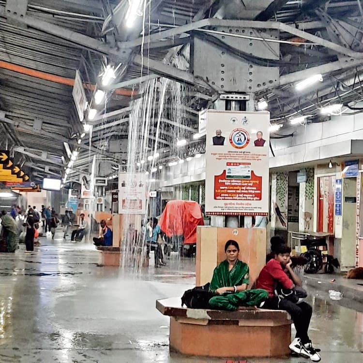 रेलवे स्टेशन की छत से गिरता रहा पानी, यात्री हुए परेशान