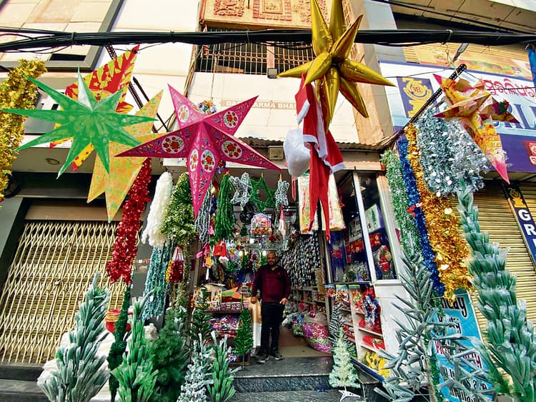 शहर की अलग-अलग दुकानों में क्रिसमस को लेकर प्लेन चरनी और उसके सजाने के सामान अलग से बिक रहे हैं. बाजार में सबसे ज्यादा सजी-सजाई चरनी की डिमांड है. प्लेन चरनी में रखने के लिए बालक यीशु के अलावा कई छोटी प्रतीकात्मक प्रतिमाएं अलग-अलग बिक रही हैं. इसे क्रिप सेट कहा जाता है, जिसकी रेंज 450, 650, 850 और 925 रुपये तक है. इसके अलावा सजी-सजायी चरनी भी बाजार में बिकने लगी है. चरनी में सजाने वाली सामग्री 100-1000 रुपये की रेंज में उपलब्ध हैं.क्रिसमस ट्री की सबसे ज्यादा डिमांड