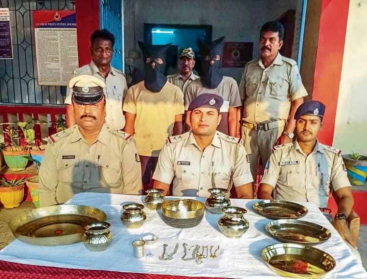 पुलिस ने आरोपियों के पास से 05 से 06 ग्राम सोने के आभूषण, 100 ग्राम चांदी के आभूषण, पूजा के बर्तन, दो कांसा थाली, एक कांस्य बेला, 03 नग छोटा लोटा, 02 बड़े कांसा लोटा, एक कांसा कुंड और एक कांसा परात बरामद की है.