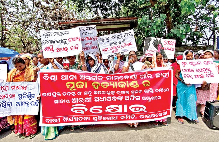 Rourkela News: बिसरा थाना क्षेत्र में करीब ढाई महीने पहले एक आदिवासी युवती की मौत के मामले में इंसाफ की मांग को लेकर जामबेरना गांव के सैकड़ों ग्रामीण शनिवार को राउरकेला एसपी कार्यालय पहुंचे. इनकी अगुआई वरिष्ठ वामपंथी नेता छवि मोहंती कर रही थीं. ग्रामीणों का कहना है कि वारदात को 72 दिन बीत जाने के बावजूद किसी की गिरफ्तारी नहीं हुई है. तख्तियों पर पीड़िता को न्याय दिलाने से संबंधित नारे लिखकर ग्रामीणों ने प्रदर्शन किया. छवि मोहंती ने कहा कि जिस तरह की जघन्य घटना घटी, हम सभी जानना चाहते हैं कि पीड़िता के साथ दरअसल हुआ क्या था.