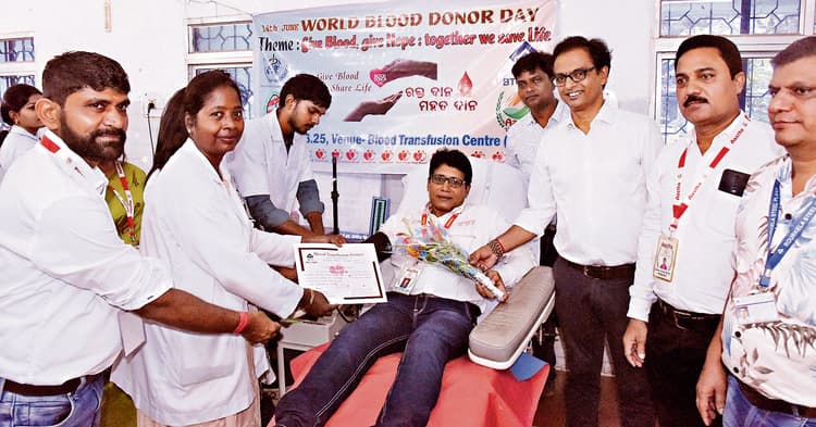 Rourkela News: राउरकेला इस्पात संयंत्र (आरएसपी) के इस्पात जनरल अस्पताल में शनिवार को विश्व रक्तदाता दिवस के अवसर पर एक समारोह आयोजित किया गया. मुख्य अतिथि के रूप में मुख्य चिकित्सा अधिकारी प्रभारी (चिकित्सा एवं स्वास्थ्य सेवाएं) डॉ जेके आचार्य ने कार्यक्रम का उद्घाटन किया. मुख्य चिकित्सा अधिकारी डॉ आरआर मोहंती तथा मुख्य चिकित्सा अधिकारी डॉ प्रतिभा षाड़ंगी सम्मानित अतिथि थे. अन्य विशिष्ट अतिथियों में उप मुख्य चिकित्सा अधिकारी तथा विभागाध्यक्ष (पैथोलॉजी) डॉ अरुणा मुक्ति मिंज, अध्यक्ष (आस्था-द फेथ) विष्णु मोहन मिश्रा, प्रबंध ट्रस्टी (जीवन ज्योति) मोतीलाल महंत शामिल थे. कार्यक्रम की शुरुआत गणमान्यों ने दीप प्रज्ज्वलित कर तथा रक्त समूहों के वर्गीकरण की आधुनिक प्रणाली विकसित करने वाले डॉ कार्ल लैंडस्टीनर को श्रद्धांजलि अर्पित करके की.