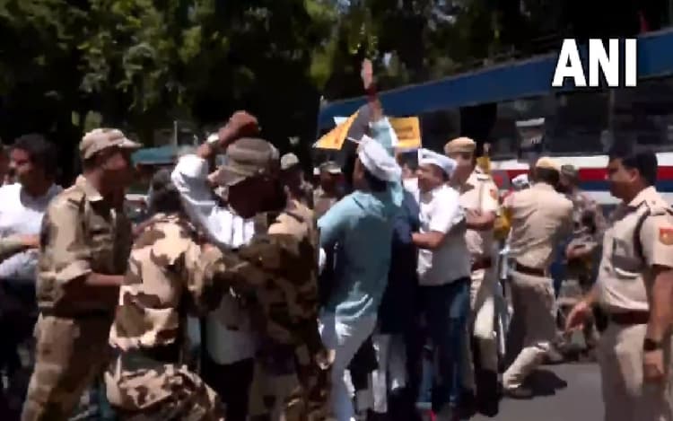 राजस्थान के जालौर में हुई घटना की चिंगारी राष्ट्रीय राजधानी दिल्ली तक पहुंच चुकी है. गुरुवार को आम आदमी पार्टी यानी आप (AAP) के कार्यकर्ताओं ने कांग्रेस मुख्यालय के बाहर प्रदर्शन किया. प्रदर्शन का वीडियो भी सामने आया है जिसमें नजर आ रहा है कि आप के कार्यकर्ता हाथों में तख्ती लिये हैं और नारे लगा रहे हैं. आप कार्यकर्ताओं को दिल्ली पुलिस ने हिरासत में ले लिया है. आपको बता दें कि पिछले दिनों खबर आयी थी कि एक 9 साल के बच्चे की पिटाई से मौत हो गयी थी. टीचर के द्वारा उसकी पिटाई की गई थी.