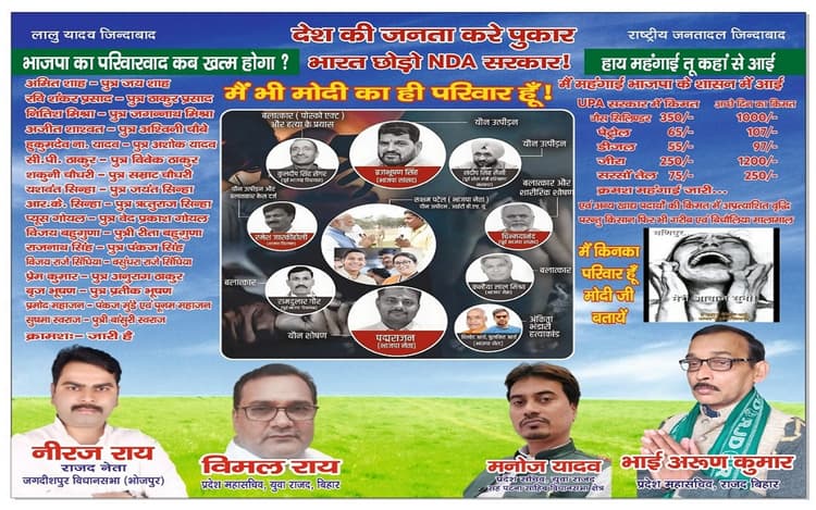 राष्ट्रीय जनता दल के प्रदेश महासचिव अरुण कुमार ने बताया कि पीएम नरेंद्र मोदी ने लालू यादव पर परिवारवाद को लेकर हमला किया. इस पोस्टर के जरिए राजद ने दिखाने का प्रयास किया है कि भाजपा में सबसे अधिक परिवारवाद है.भाजपा की अपेक्षा राजद में कम परिवारवाद है.