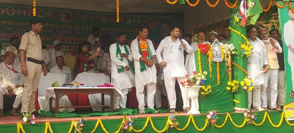 सभा को संबोधित करते तेजस्वी