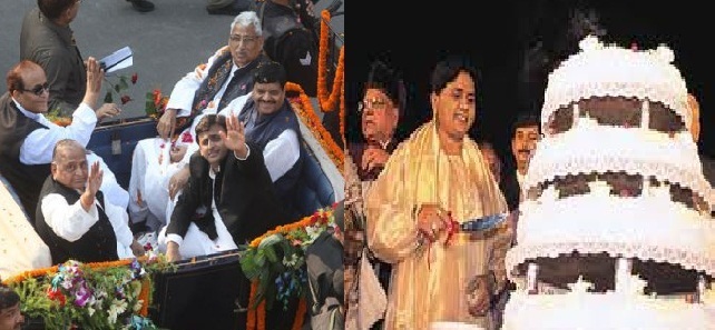 समाजवादी पार्टी तत्कालीन मुख्यमंत्री मायावती के धूम-धाम से अपना जन्मदिन मनाने का हमेशा से विरोध करती आयी है. लेकिन मुलायम सिंह यादव ने अपना 75वां जन्मदिन शाही बग्धी में सवार होकर एक बड़े आयोजन के साथ मनाया. इस आयोजन के जरिये उन्होंने मायावती पर उठाये सवाल को एक अलग दिशा दे दी. इस तरह के विशाल आयोजनों ने यह साफ कर दिया कि ऐसे आयोजन अब इस प्रदेश में अपनी धाक दिखाने और जनता के बीच अपनी पैठ मजबूत करने का एक महत्वपूर्ण जरिया बनते जा रहे हैं, जिनके जरिये इन पार्टियों के द्वारा अपने खोये जनाधार और खिसकते वोट बैंक को समेटने की कोशिश की जाती है.