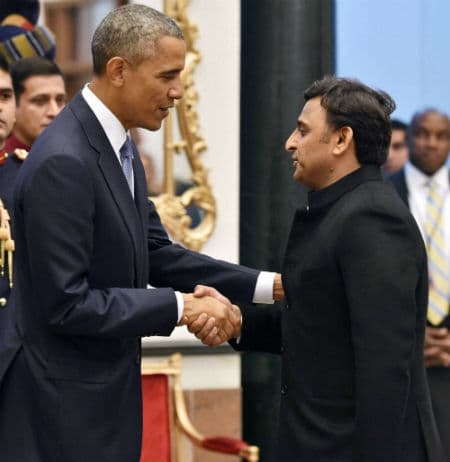 यादव ने आज ट्विटर पर लिखा कि राष्ट्रपति प्रणब मुखर्जी के रात्रिभोज में शामिल हुआ. अमेरिकी राष्ट्रपति बराक ओबामा का ताजमहल में स्वागत करने का अवसर चूक गया.