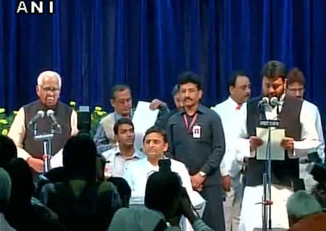 लखनऊ :उत्तर प्रदेश की अखिलेश यादव सरकार के मंत्रिमंडल में व्यापक फेरबदल के तहत आज 20 मंत्रियों तथा राज्यमंत्रियों को पद और गोपनीयता की शपथ दिलायी गयी. मंत्रिमण्डल में कुल नौ मंत्रियों को प्रोन्नति दी गयी है जबकि दो कैबिनेट तथा 10 राज्यमंत्रियों समेत कुल 12 नये मंत्रियों को शामिल किया गया है. राज्यपाल राम नाईक ने राजभवन में आयोजित शपथग्रहण समारोह में स्वतंत्र प्रभार के राज्यमंत्रियों अरविंद सिंह गोप, कमाल अख्तर तथा विनोद सिंह उर्फ पंडित सिंह को काबीना मंत्री के तौर पर शपथ दिलायी गयी. इसके अलावा बलवंत सिंह रामूवालिया तथा साहब सिंह सैनी के रूप में नये मंत्रियों ने भी काबीना मंत्री की शपथ ली.