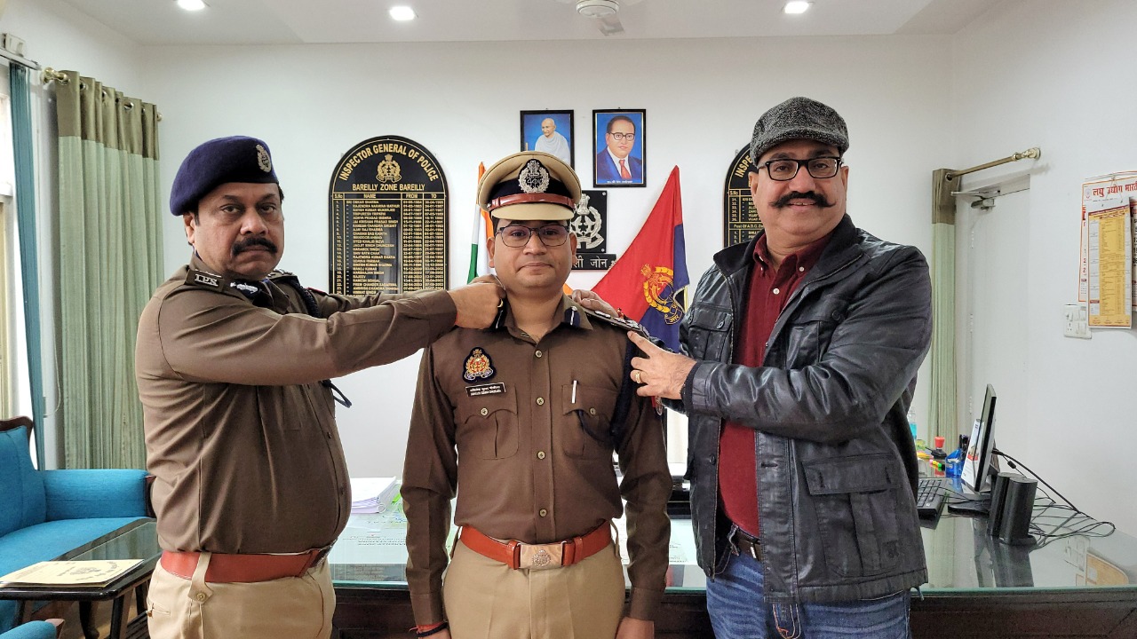 Bareilly: 2009 बैच के आईपीएस अफसर अखिलेश कुमार चौरसिया का एसएसपी से डीआईजी के पद पर प्रमोशन होने के बाद रविवार को एडीजी जोन प्रेमचंद मीणा (पीसी मीणा) और आईजी रेंज राकेश सिंह ने उन्हे बधाई देकर रैंक प्रतीक लगाया.राजधानी लखनऊ में मई 1983 को जन्मे अखिलेश कुमार चौरसिया 2009 बैच के आईपीएस अधिकारी हैं.