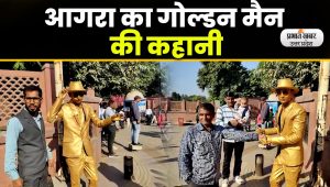उत्तर प्रदेश के आगरा जिले में ताजमहल देखने वाले पर्यटक इन दिनों शानदार इमारत के साथ गोल्डमैन स्टेच्यू की चर्चा भी कर रहे हैं. सिर से लेकर पांव तक सुनहरे रंग में रंगे गोल्डमैन से हाथ मिलाकर हर कोई खुश होता है. इस गोल्ड मैन की खासियत है कि वह 3 घंटे तक बिना हिले डुले एक ही स्थिति में खड़ा रहता है.