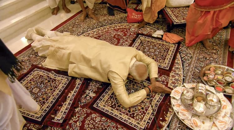 प्राण-प्रतिष्ठा समारोह के बाद मोदी ने भगवान राम को साष्टांग प्रणाम किया.