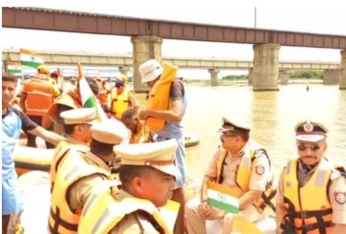 बरेली पुलिस ने रामगंगा नदी में बोट पर निकाली तिरंगा यात्रा, कमिश्नरी और कलेक्ट्रेट में फहराया गया तिरंगा