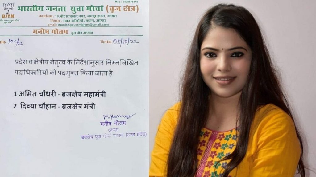 Agra News: भाजयुमो के ब्रज क्षेत्र अध्यक्ष ने दिव्या चौहान और अमित चौधरी को पार्टी से किया निष्कासित