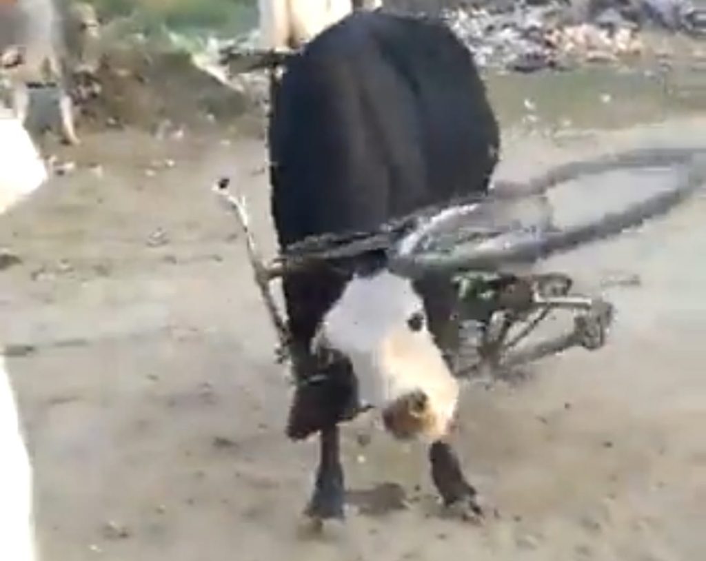 आगरा में पलभर में मचा हड़कंप, साइकिल के फ्रेम में फंसी सांड की गर्दन, वीडियो सोशल मीडिया पर वायरल
