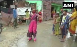 उत्तर प्रदेश: सीतापुर में एक 11 वर्षीय बच्ची साड़ी पहनकर और गांव की गलियों में स्केटिंग करते हुए लोगों को कोविड वैक्सीन लगाने के लिए जागरूक कर रही हैं।