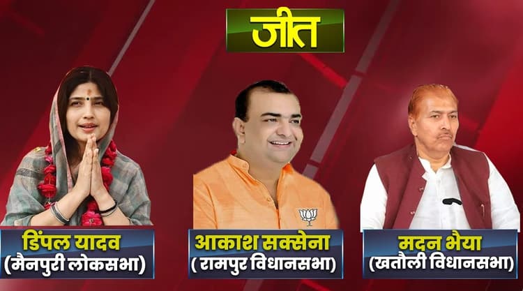 Lucknow: यूपी में हुए मैनपुरी लोकसभा उपचुनाव और रामपुर-खतौली के विधानसभा उपचुनाव के परिणाम घोषित हो गये हैं. मैनपुरी लोकसभा सीट से डिंपल यादव ने 288461 वोट से जीत हासिल की है. जबकि रामपुर में समाजवादी पार्टी और आजम खान को झटका लगा है. वहां से बीजेपी ने आखिरकार आजम खान को किले को ढहा दिया है. बीजेपी प्रत्याशी आकाश सक्सेना रामपुर से 33702 वोट से जीते हैं. वहीं मुजफ्फर नगर की खतौली विधानसभा सीट मदन भैया ने 22,165 वोट से जीत ली है.