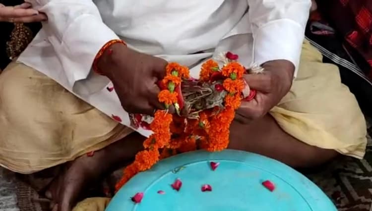 बारिश न होने से परेशान लोग हवन पूजन कर रहे हैं तो कोई कीचड़ से नहा रहा है. ऐसे में गोरखपुर जिले में एक अनोखा टोटका देखने को मिला है. बारिश के लिए कालीबाड़ी मंदिर में पूरे रीति रिवाज के साथ लोगों ने मेंढक और मेंढकी की शादी कराई है. इन दोनों की शादी हिंदू महासंघ के लोगों ने कराई. मंगलवार को शहर के कालीबाड़ी मंदिर में हिंदू महासंघ के कार्यकर्ता राधाकांत वर्मा ने मेंढक और मेंढकी की सांकेतिक शादी कराई. इस बात की जब लोगों को जानकारी हुई तो शादी को देखने के लिए भीड़ जुट गई. लोगों का यह भी कहना था कि मेंढक और मेंढकी की शादी कराने का अनोखा तरीका जरूर कारगर साबित होगा.