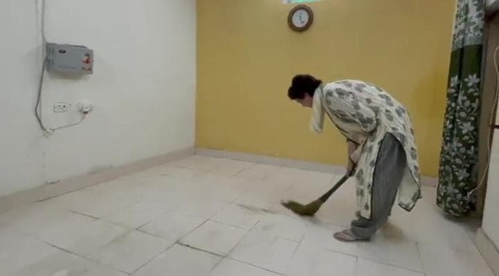 वायरल वीडियो में प्रियंका गांधी एक कमरे में झाड़ू लगा रही हैं. बताया जा रहा है कि यह वीडियो सीतापुर गेस्ट हाउस की है, जहां पुलिस ने उन्हें हिरासत में रखा है. बता दें कि आज तड़के सुबह यूपी पुलिस ने लखीमपुर खीरी जाने के दौरान उन्हें हिरासत में ले लिया था. इसकी पुष्टी कांग्रेस यूपी के अध्यक्ष अजय कुमार लल्लू ने की थी.
