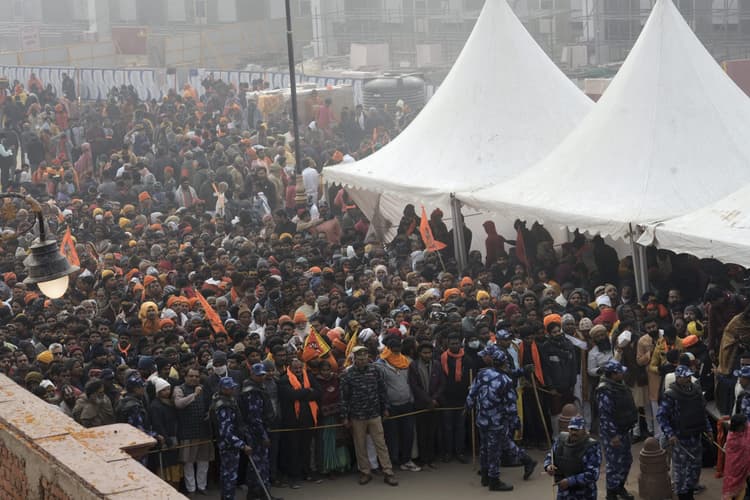 Ayodhya Ram Mandir: अयोध्या में राम मंदिर के भव्य आयोजन के बाद आज यानी मंगलवार से राम मंदिर के कपाट आम भक्तों के लिए खोल दिए गये हैं. देश के कोने-कोने से भक्त राम लला के दर्शन के लिए अयोध्या आ रहे हैं. मंदिर खुलने से पहले ही भगवान राम के चित्र वाले झंडे लेकर और जय श्री राम के नारे लगाते हुए श्रद्धालु कड़कड़ाती ठंड में मंदिर के दरवाजे खुलने से पहले घंटों तक इंतजार करते रहे. रामलला के दर्शन का आलम यह है कि अबतक साढ़े तीन लाख से ज्यादा लोग प्रभु के दर्शन कर चुके हैं, और लाखों लोग दर्शन की प्रतीक्षा में हैं. इस जनसैलाब को नियंत्रित करने में पुलिस के भी पसीने छूट रहे हैं. भारी भीड़ को देखते हुए यूपी के प्रमुख सचिव और विशेष डीजी भी मोर्चा संभालना पड़ा.